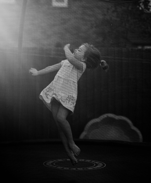 Jedno z moich ulubionych zdjęć 📸 Chwila radości i beztroski - dziewczynka na trampolinie zatrzymana w klasycznej czerni i bieli.